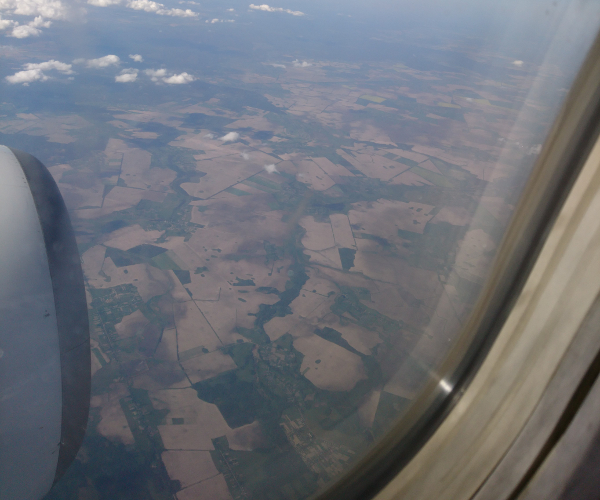 Nach kurzer Zeit hat die ukrainische Rumpelkiste Flughöhe erreicht und es geht in Richtung Kiew. Unter uns sind nur wenige Wolken zu sehen und so blicke ich, am Triebwerk vorbei, auf vorbeirauschende Felder und Städte. Etwa zwei Stunden später setzt der Flieger hart auf der Landebahn auf und der Pilot bedankt sich in drei Sprachen für unsere Wahl der Fluggesellschaft. Der vermeintlich russische und bis dato stumme Sitznachbar fängt hektisch an zu telefonieren. Unverkennbar ein Holländer – na ja, knapp daneben geraten. So geht es in einer abenteuerlich anmutenden Busfahrt über das Rollfeld. Über den erstaunlich überschaubaren Kiewer Flughafen spazieren wir ohne Zeitdruck durch die Passkontrolle. Mit ukrainischem Stempel im Pass geht es anschließend zur Sicherheitskontrolle für unseren Anschlussflug nach Odessa.