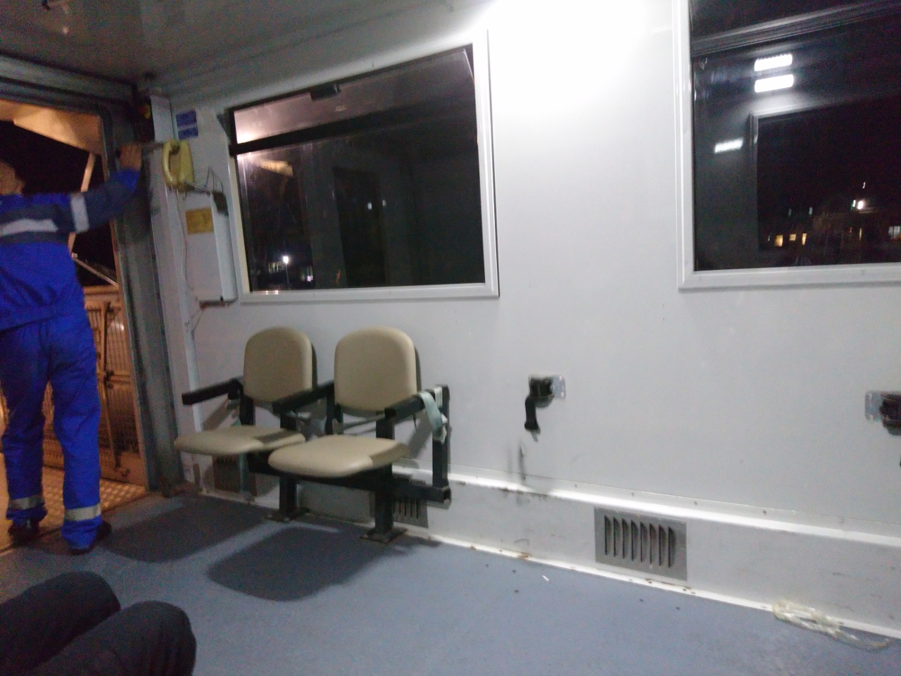 Ein alter, dünner Mann mit eingefallenen Wangenknochen und unvollständigem Gebiss kommt in die Kabine gestürmt. Er trägt einen blauen Overall und fragt Rufus auf Russisch lautstark, ob er laufen könne. Nachdem ich die ratlosen Blicke der wartenden Flugzeugbesatzung zur Kenntnis genommen habe, kläre ich den Mann darüber auf, dass Rufus keinesfalls laufen könne. Er verschwindet wieder, und kurz darauf kommt er mit dem schmalen Flugzeug-Rollstuhl angerückt. Ich fasse unser Gepäck, und es geht nach draußen in den Tribünenwagen, wo Rufus wieder auf seinen eigenen Rollstuhl umsteigt. Mühevoll rangiert sich das Vehikel vom Flugzeug weg, während der Alte wild gestikulierend in der halb geöffneten Schiebetür steht und in einer Mischung aus Befehlen und ukrainisch-russischen Flüchen nach draußen schreit.